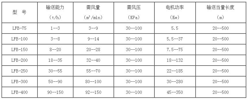 鼎龍氣力輸送設(shè)備參數(shù):