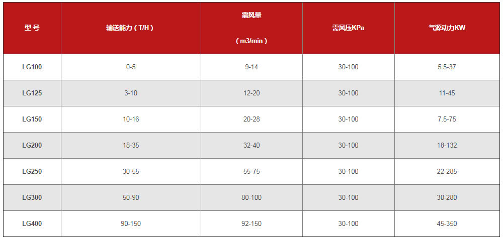 鼎龍公司氣力輸送設(shè)備參數(shù):